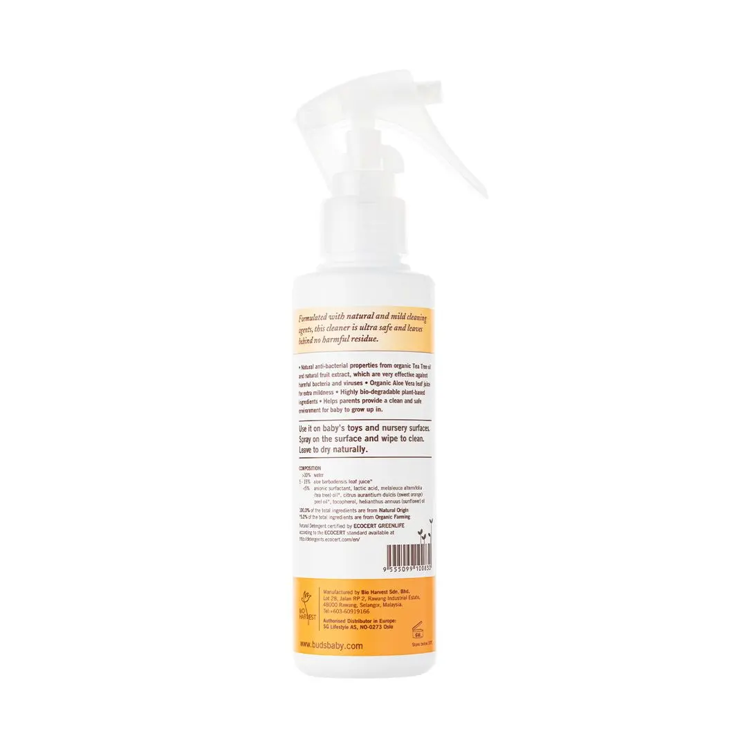 Formulated with natural and mild cleaning agents, this cleaner is ultra safe and leaves behind no harmful residue. It contains natural antibacterial properties from Organic Tea Tree Oil and Sweet Orange Peel Oil, which is effective against harmful bacteria and viruses.Organic Aloe Vera Leaf Juice adds extra mildness. This cleaner uses highly biodegradable plant-based ingredients, and most importantly, it helps parents provide a clean and safe environment for baby to grow up in.