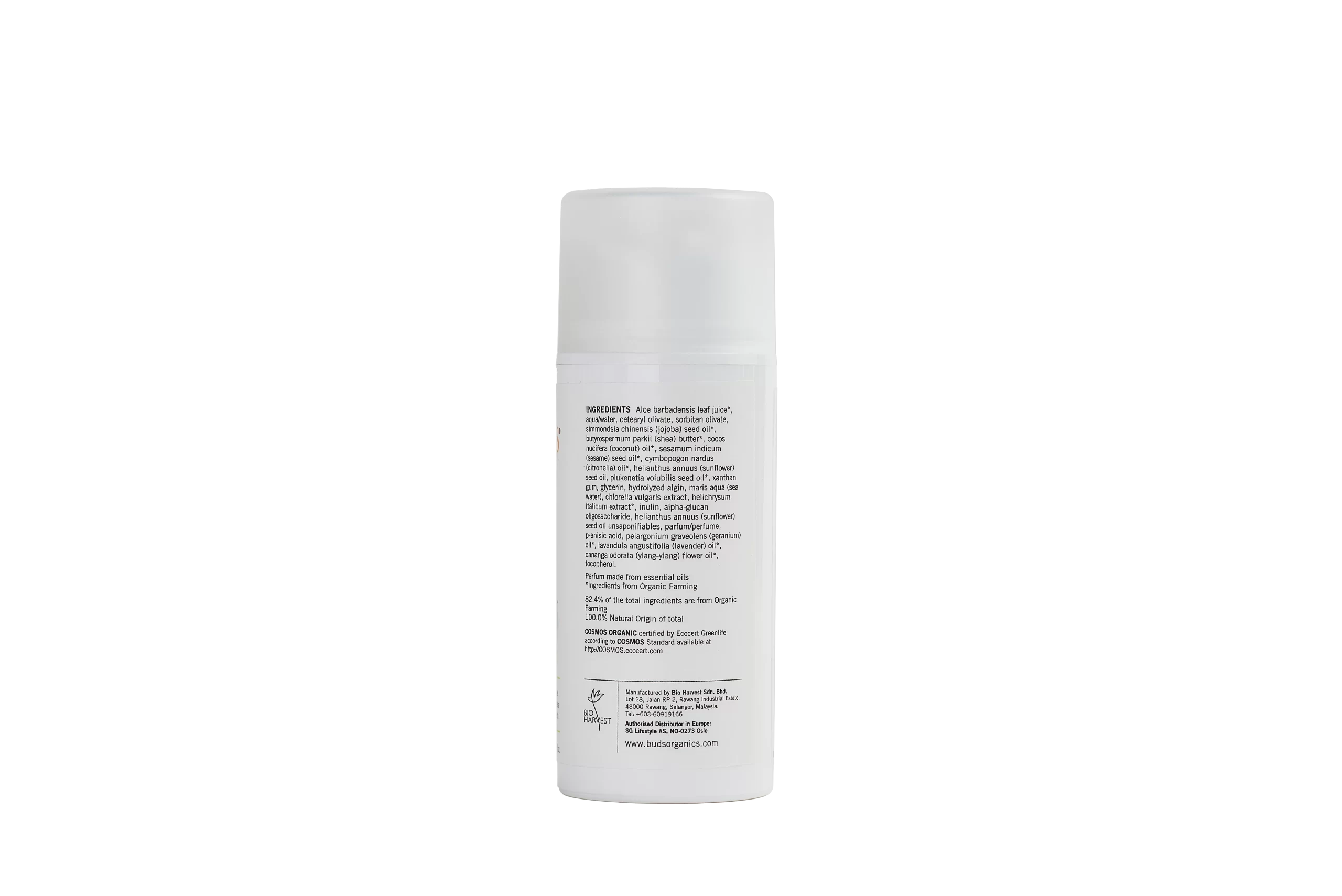 Aloe barbadensis leaf juice*, aqua/water, cetearyl olivate, sorbitan olivate, simmondsia chinensis (jojoba) seed oil* butyrospermum parkii (shea) butter*, cocos nucifera (coconut) oil*, sesamum indicum (sesame) seed oil*, cymbopogon winterianus (citronella) oil*, helianthus annuus (sunflower) seed oil, plukenetia volubilis seed oil*, xanthan gum, glycerin, hydrolyzed algin, maris aqua (sea water), chlorella vulgaris extract, helichrysum italicum extract*, inulin, alpha-glucan oligosaccharide, helianthus annuus (sunflower) seed oil unsaponifiables*, parfum/perfume, p-anisic acid, pelargonium graveolens (geranium) oil* lavandula angustifolia (lavender) oil* cananga odorata (ylang-ylang) flower oil*, tocopherol.