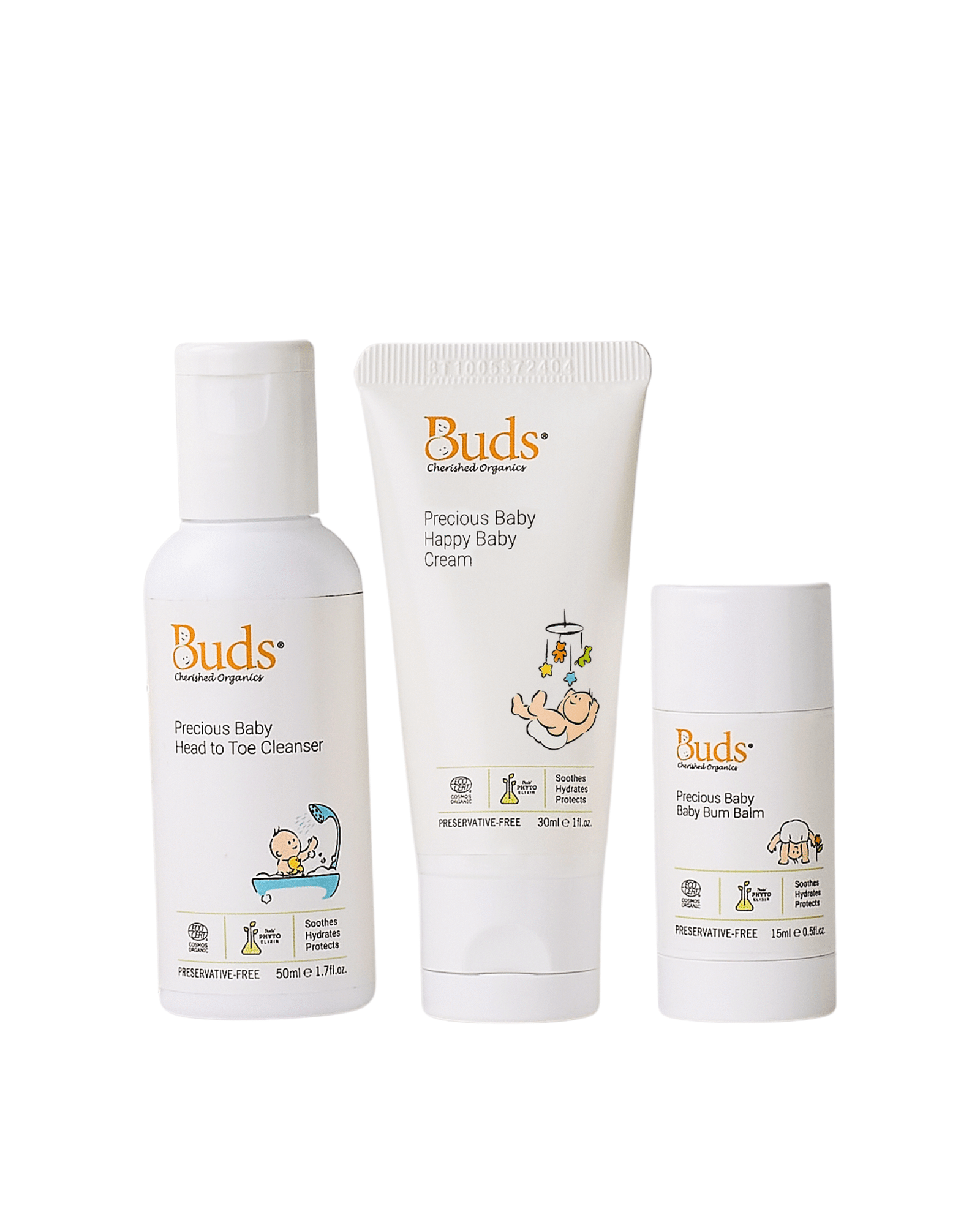 Thoughtfully crafted for precious little ones, this preservative-free trio nurtures skin with clinically proven plant actives for ultimate care and protection. Each product is infused with Buds’ signature Phyto Elixir Complex, a blend of plant ingredients that soothes, hydrates and protects from day one