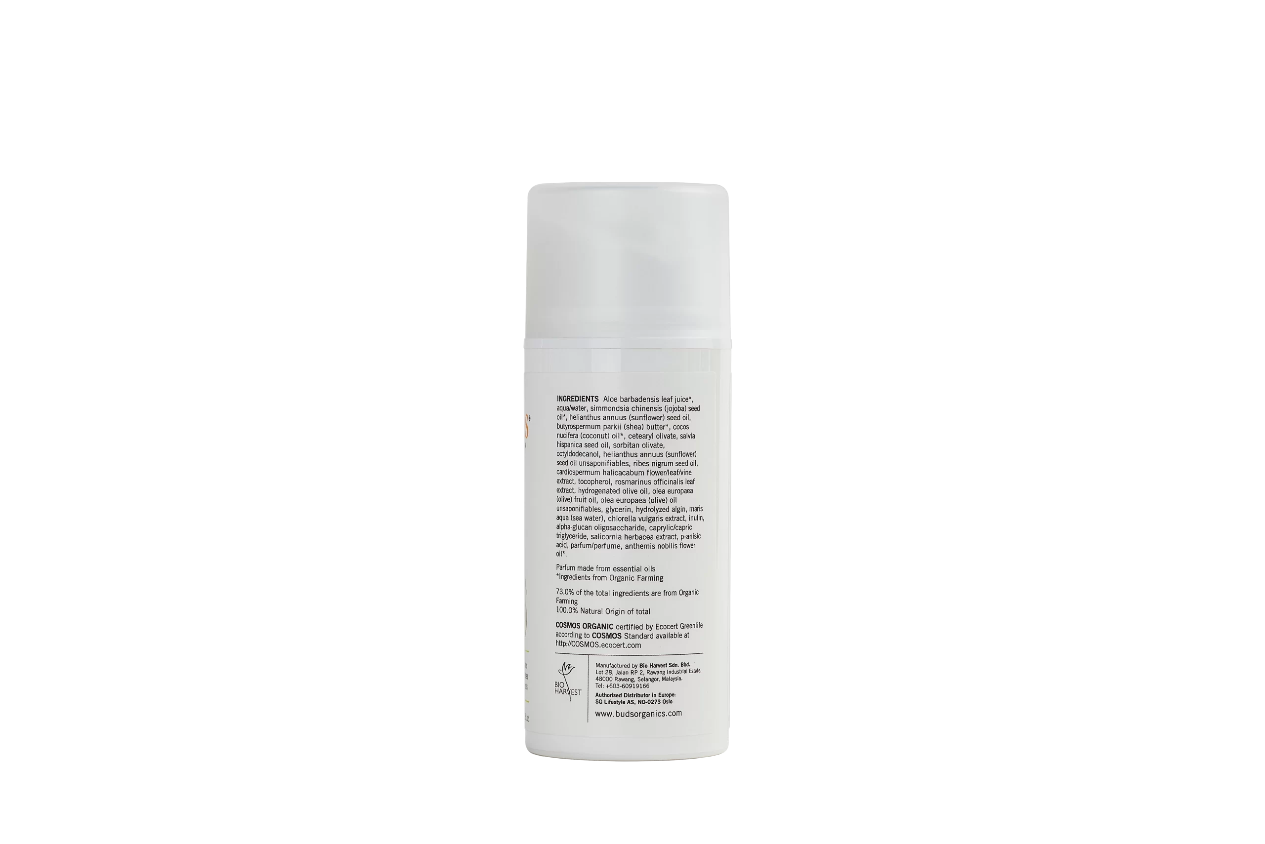 Aloe barbadensis leaf juice*, aqua/water, simmondsia chinensis (jojoba) seed oil* , helianthus annuus (sunflower) seed oil, Butyrospermum parkii (Shea) butter* , cocos nucifera (coconut) oil* , cetearyl olivate, salvia hispanica seed oil, sorbitan olivate, octyldodecanol, helianthus annuus (sunflower) seed oil unsaponifiables*, ribes nigrum seed oil, cardiospermum halicacabum flower/leaf/vine extract, tocopherol, rosmarinus officinalis leaf extract, hydrogenated olive oil, Olea europaea (olive) fruit oil, Olea europaea (olive) oil unsaponifiables, glycerin, hydrolyzed algin, maris aqua (sea water), chlorella vulgaris extract, inulin, alpha-glucan oligosaccharide, caprylic/capric triglyceride, salicornia herbacea extract* , p-anisic acid, parfum/perfume, anthemis nobilis flower oil*.