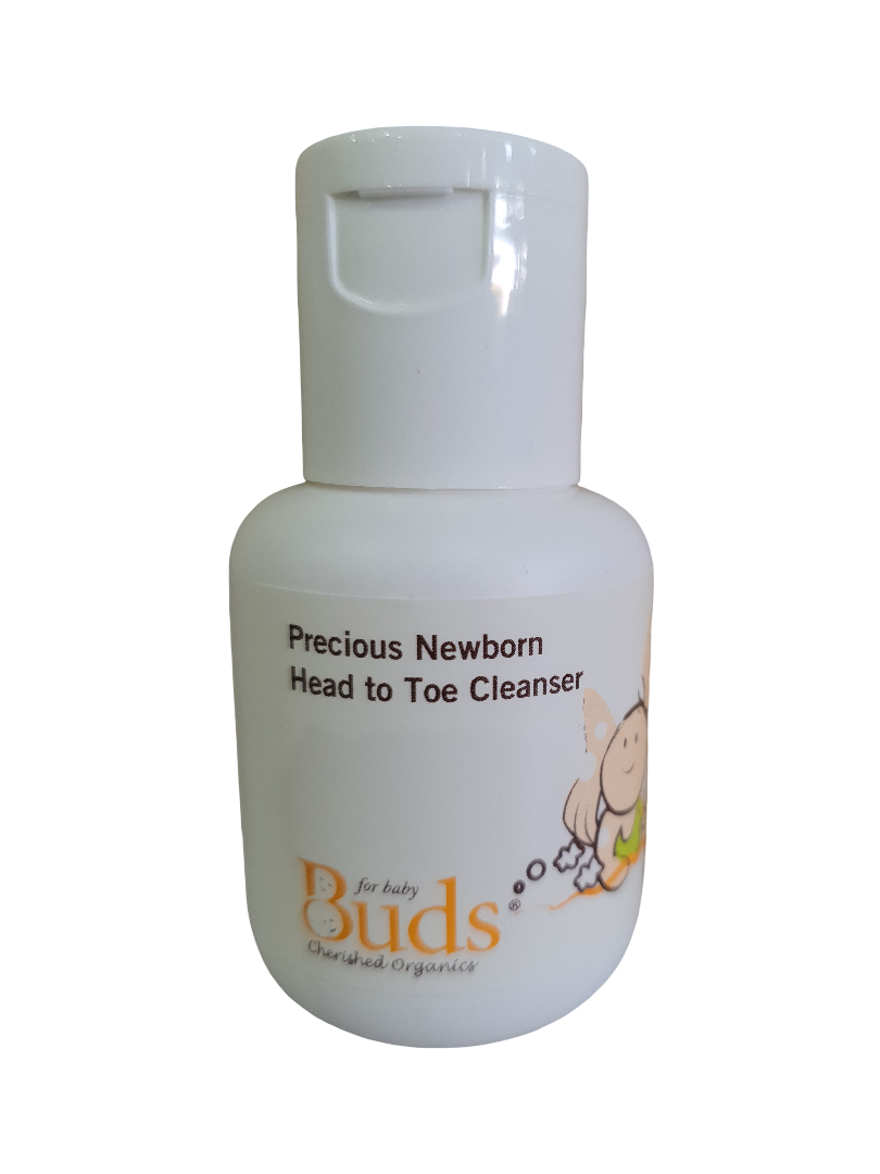 Remember to bring our Precious Newborn Head to Toe Cleanser with you to the hospital so that your baby‘s first bath is free of harsh ingredients and harmful chemicals. When you bath baby at home, you can either add our cleanser to the bath water or use it directly on baby’s skin. Our cleanser is also ideal for topping and tailing:
