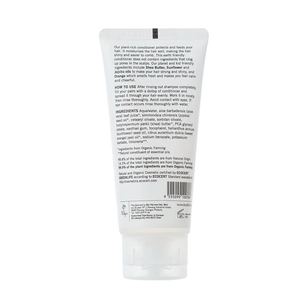 Our plant-rich conditioner protects and feeds your hair. It moisturises the hair well, making the hair shiny and easier to comb. This earth friendly conditioner does not contain ingredients that clog up pores in the scalps. Our planet and kid-friendly ingredients include Shea Butter, Sunflower and Jojoba Oils to make your hair strong and shiny, and Orange which smells fresh and makes you feel calm and cheerful.