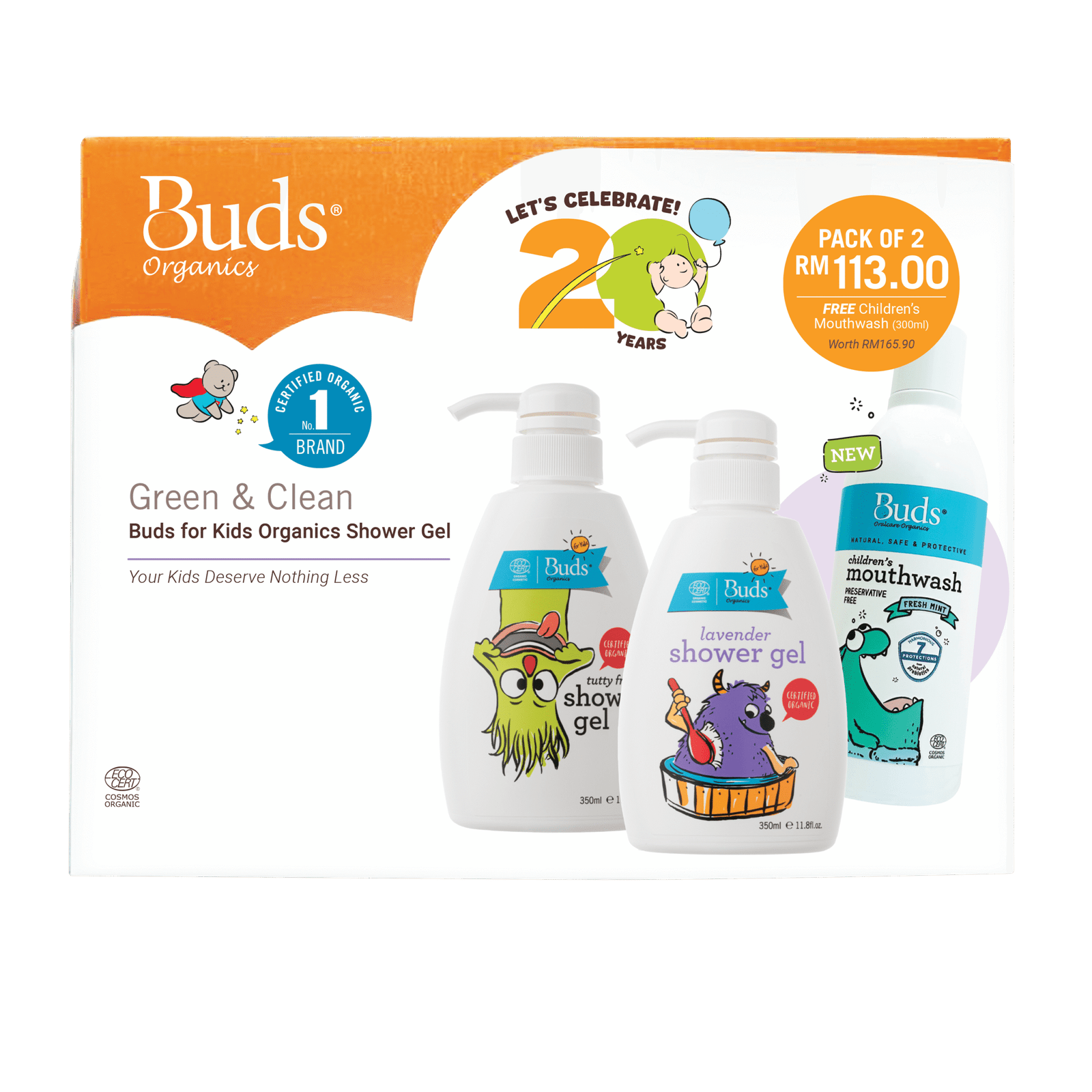 Buds for Kids Shower Gel and Shampoo is mild and gentle yet cleans effectively. Our planet and kid friendly ingredients include Aloe Vera for moisturisation and Orange for extra tangy freshness.