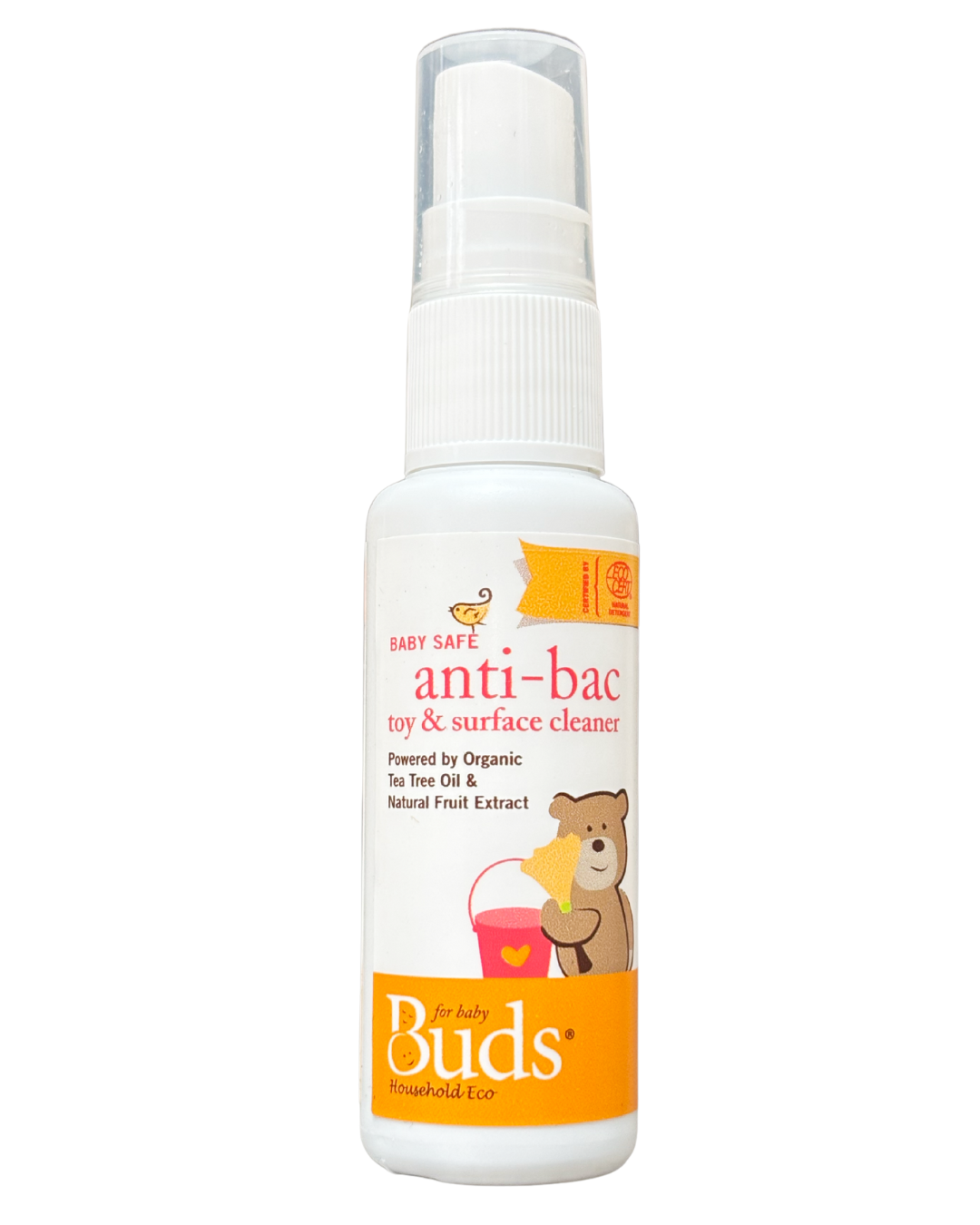 Use it on baby’s toys and nursery surfaces. Spray on the surface and wipe to clean. Leave to dry naturally.