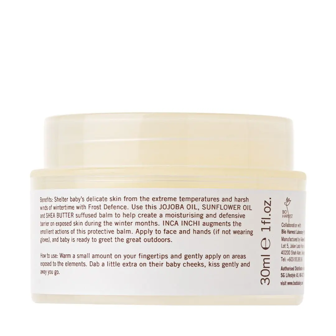 Shelter baby’s delicate skin from the extreme temperatures and harsh winds of wintertime with Frost Defence. Use this Jojoba Oil, Sunflower Oil and Shea Butter suffused balm to help create a moisturising and defensive barrier on exposed skin during the winter months. Inca Inchi augments the emollient actions of this protective balm. Apply to face and hands (if not wearing gloves), and baby is ready to greet the great outdoors.