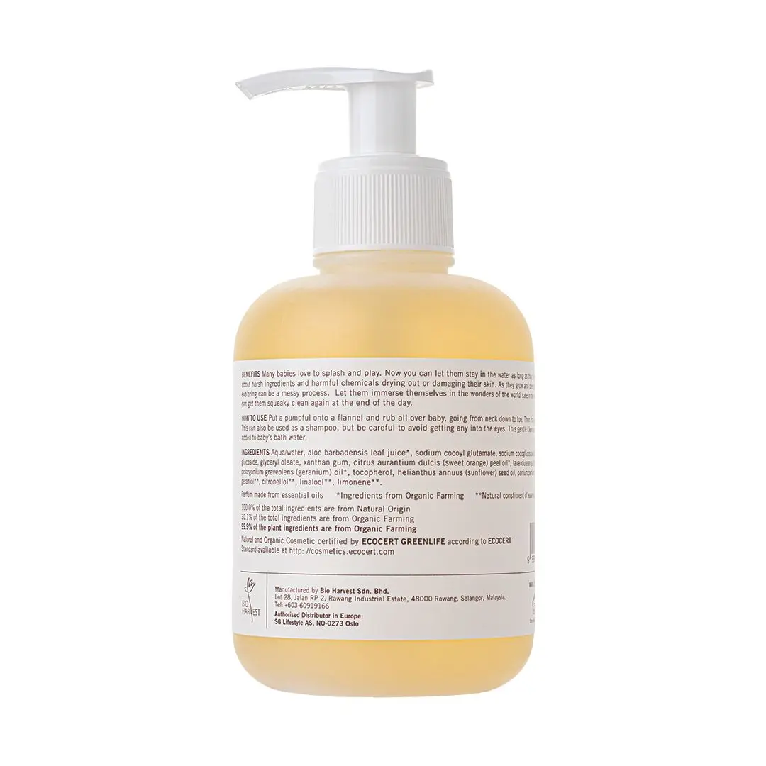 Put a pumpful onto a flannel and rub all over baby, going from neck down to toe. Then rinse with warm water. This can also be used as a shampoo, but be careful to avoid getting any into the eyes. This gentle cleanser can also be added to baby’s bath water.