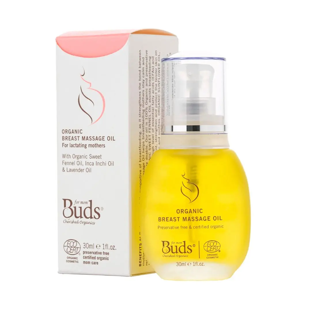 At Buds, we are fully supportive of breastfeeding, as it strengthens the bond between mother and baby. Our Organic Breast Massage Oil helps breastfeeding mothers stay calm and relaxed, making breastfeeding easier and more doable. Our oil is 100% Organic and preservative free, making it completely safe for baby. Organic Sweet Fennel Oil assists breastfeeding mothers and Organic Inca Inchi Oil, with its high level of Essential Fatty Acids (EFAs) and Organic Rosemary Extract, a potent antioxidant, strengthen and protect the tender skin on the breasts. Organic Lavender Oil calms, relaxes and soothes. Organic Sunflower Oil, Organic Olive Oil and Organic Jojoba Oil nourish and moisturise.