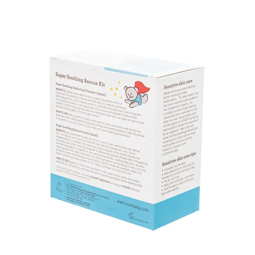 Use Super Soothing Rescue Lotion to soothe baby’s sensitive & over reactive skin. Let baby be one of the first to benefit from prebiotic boosted skin care. Alpha-glucan oligosaccharide is a prebiotic that selectively fuels the growth of the healthy bacteria on your baby’s skin while inhibiting the growth of detrimental bacteria. Packed with a thoughtfully selected combination of ingredients like calming Shiso Extract, soothing Aloe Vera, recovery boosting Spent Grain Wax, antioxidant rich Olive Leaf Extract and hydrating Fructan, this rich yet gentle cream is everything you could hope for. And to further set ourselves above and beyond the rest, our base consists of lush Jojoba, Sunflower and Inca Inchi oils.